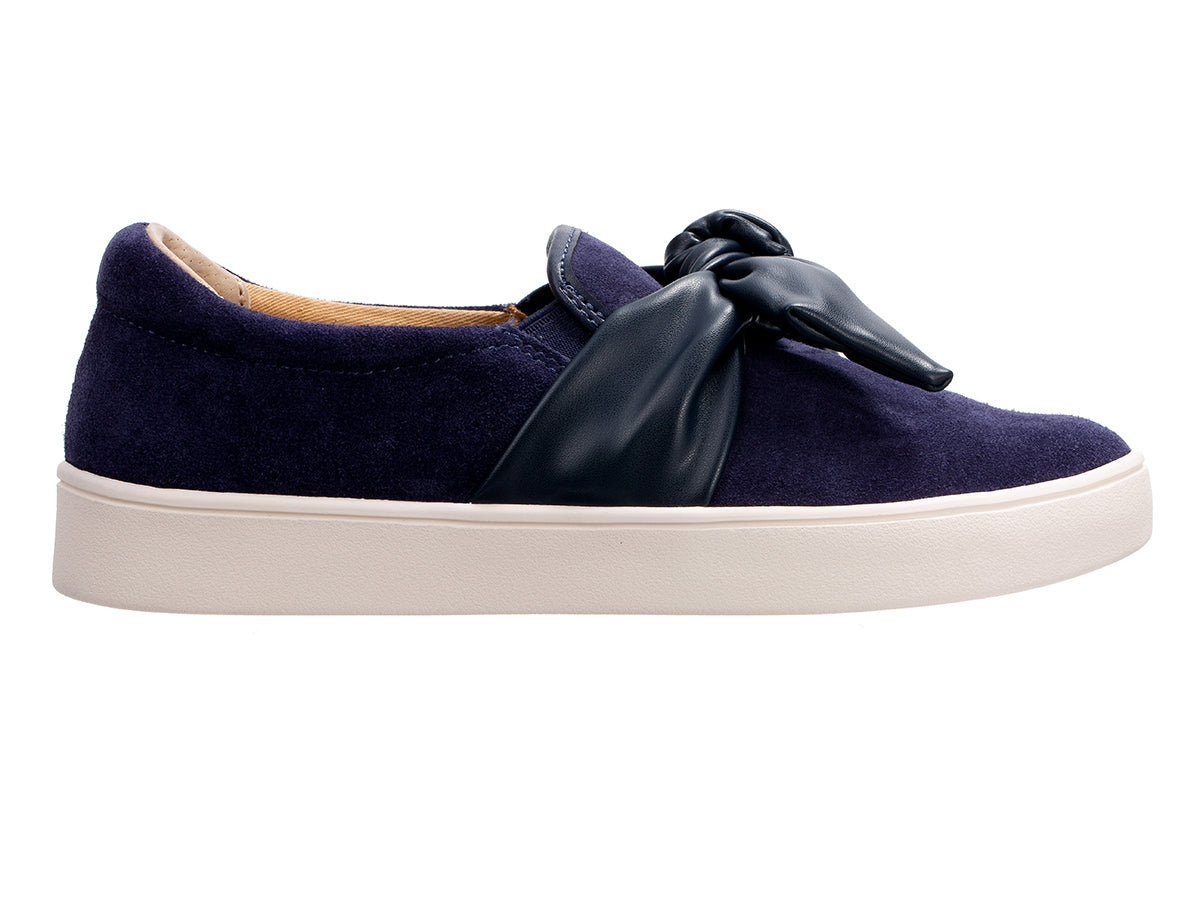 Indulge in laid-back luxury and exceptional style with the Barbados Bow, your go-to slip-on from sunrise to sunset. Featuring twin stretch gore panels and a padded collar for ultimate comfort, this on-trend shoe showcases a playful modern bow paired with ultra-soft suede for a feminine touch. Experience unmatched orthotic comfort and all-day support with Revitalign® Footwear and our patented Full Contact Comfort® footbed.