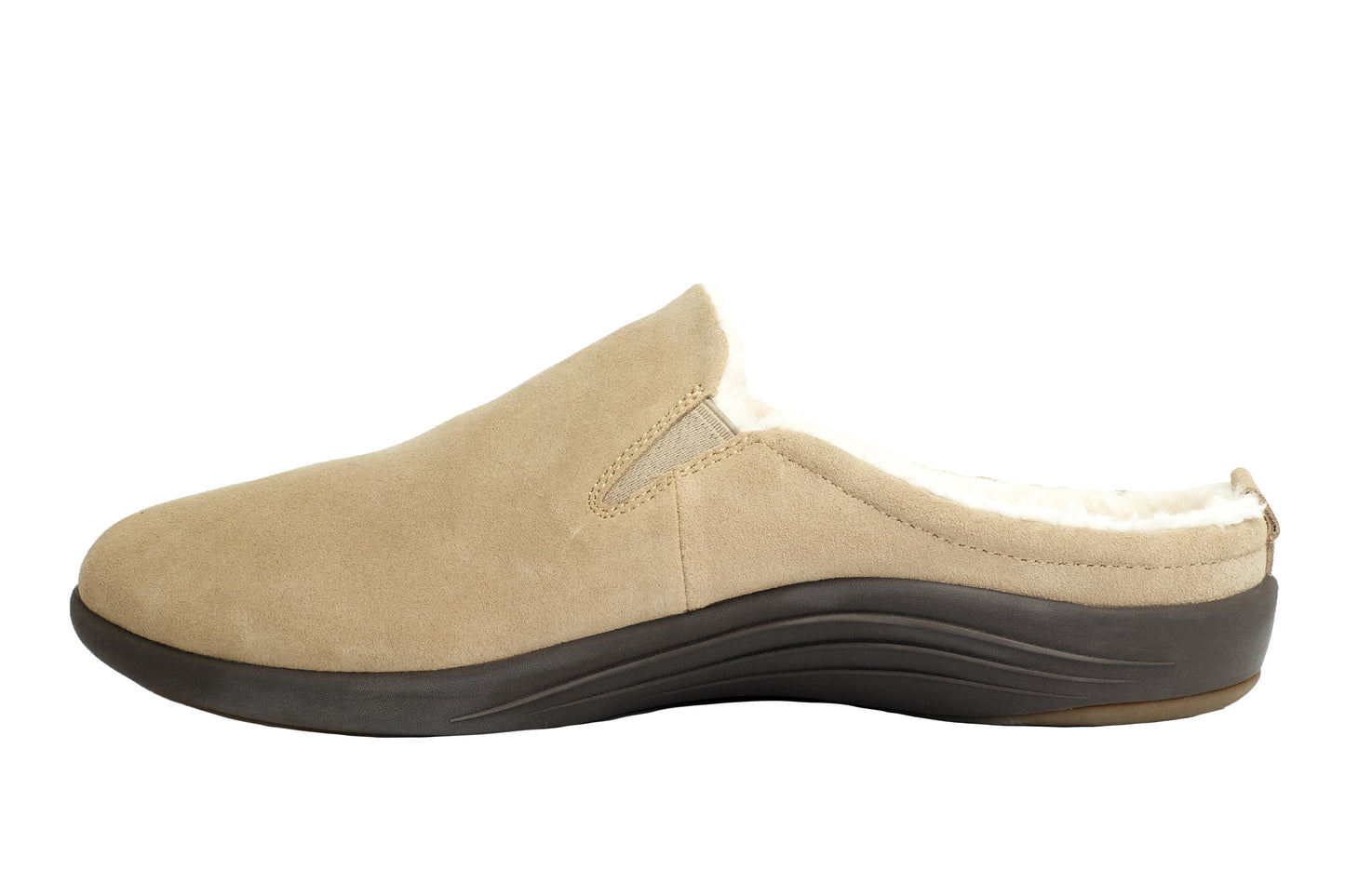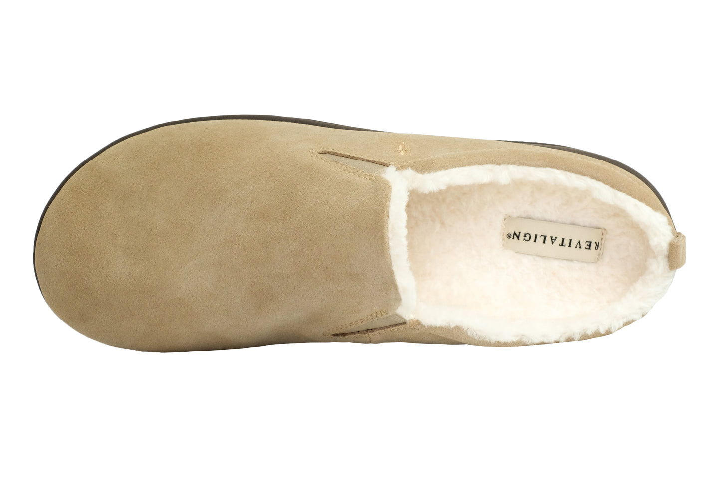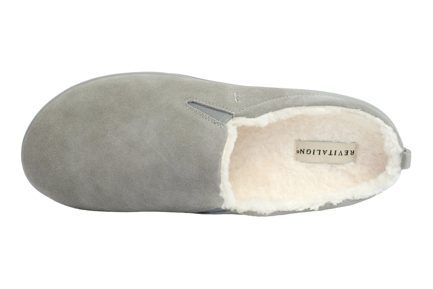 Slip into our most casual and comfortable, on-the-go slipper featuring genuine water-resistant suede with sherpa plush lining throughout. From bedside to the BBQ and everywhere in-between, you’ll forget you are wearing orthotic quality slippers with doctor-designed technology featuring Revitalign® and the Full Contact Comfort® removable footbed, get ready for an unmatched level of orthotic support and comfort.
