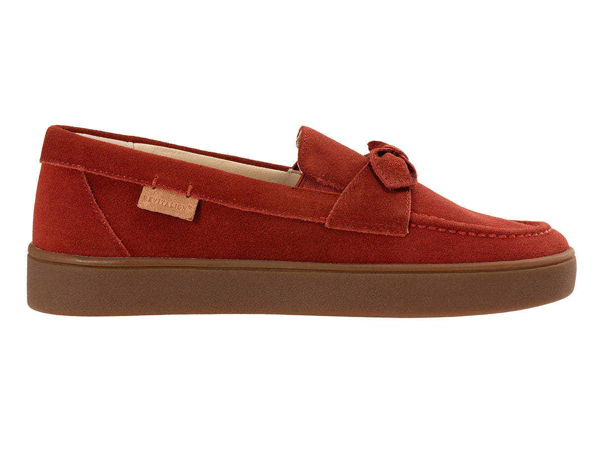 Discover the perfect combination of comfort and style in the Malibu Diana, an easy-to-wear slip-on sneaker. Featuring fashion-forward suede trimmed with a pinched bow accent and heavy-weight decorative stitching, this shoe offers an elevated look. Malibu Diana is a breeze to slip on with elastic stretch panels, allowing you to step out and into style with ease. Revitalign® Footwear elevates your orthotic experience with an unmatched level of comfort and support.