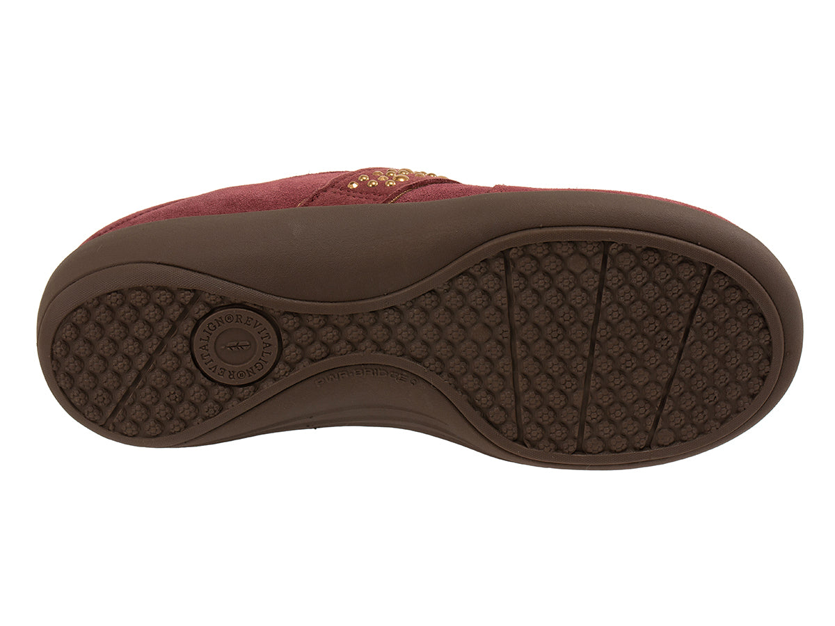 Elevate your every step with the Siesta Aries, a beautiful blend of function and fashion in genuine suede with welded trim. The stretchable strap adds a tailored touch, ensuring a flawless fit throughout your day. Beneath it all, Revitalign® Footwear’s patented technology delivers unparalleled orthotic support—thoughtfully crafted to contour, cradle, and elevate your experience.
