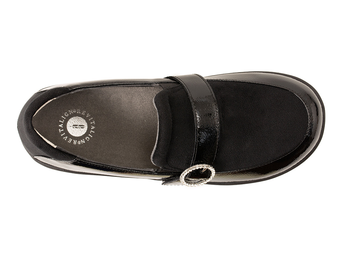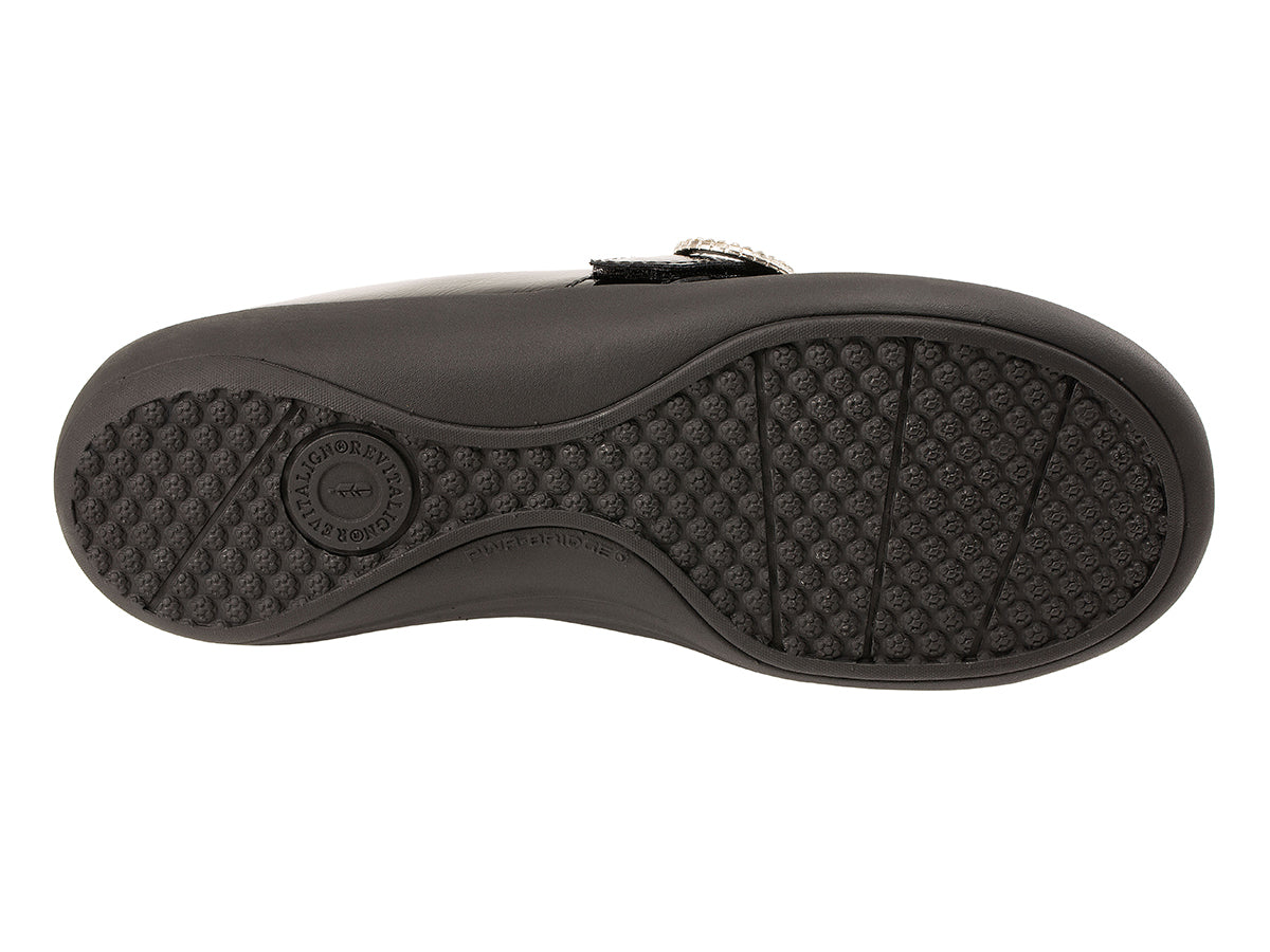 Curated for exceptional comfort and seasonal style, the Siesta Majestic blends rich, deep hues of luxe velvet and a patent finish. Featuring glamorous diamond crystal adjustability and a touch of stretch gore for a perfect fit, this design ensures all-day ease. Powered by Revitalign® Footwear, it delivers unmatched orthotic support and lasting comfort for years to come.