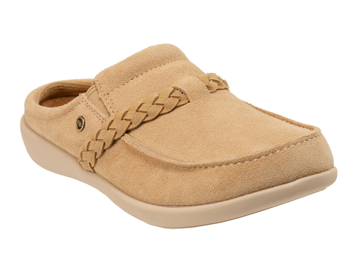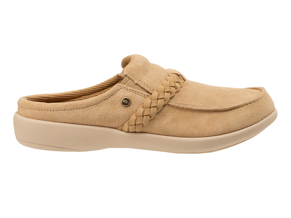 Designed for all-day luxury, the Siesta Braidy pampers your feet from the inside out. This elegant slip-on mule is crafted with genuine soft suede and a beautifully detailed braided trim, making it the perfect choice for those who want a "spring-forward" look with year-round comfort. Beyond its artisanal style, the Siesta Braidy is a powerhouse of foot health—engineered to provide the essential arch support and heel stability required to manage and prevent the pain of Plantar Fasciitis.