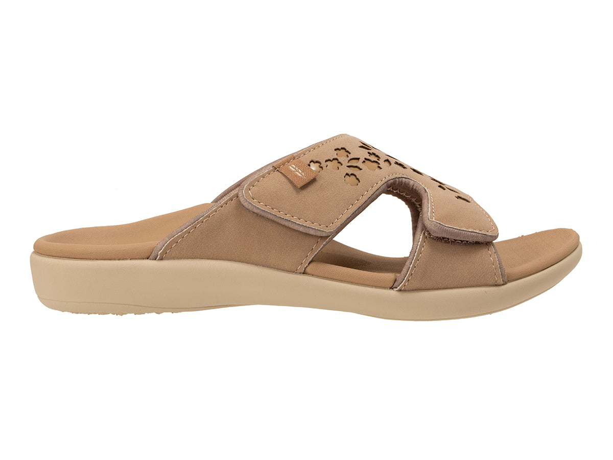 Let the Kholo Chantilly set the tone for your next adventure. Our most iconic and beloved fully adjustable slide receives a high-craftsmanship update, trimmed with gorgeous dimensional flower petals riveted with a metallic center piece. This artisanal detailing adds a touch of sophisticated femininity to a style loaded with clinical-grade orthotic engineering. Designed for the woman who demands both a tailored fit and a boutique aesthetic, the Kholo Chantilly ensures you never have to choose between "pretty" and "supportive." Powered by the Revitalign® signature Full Contact Comfort® system, it delivers exceptional stability and comfort that lasts for years to come.