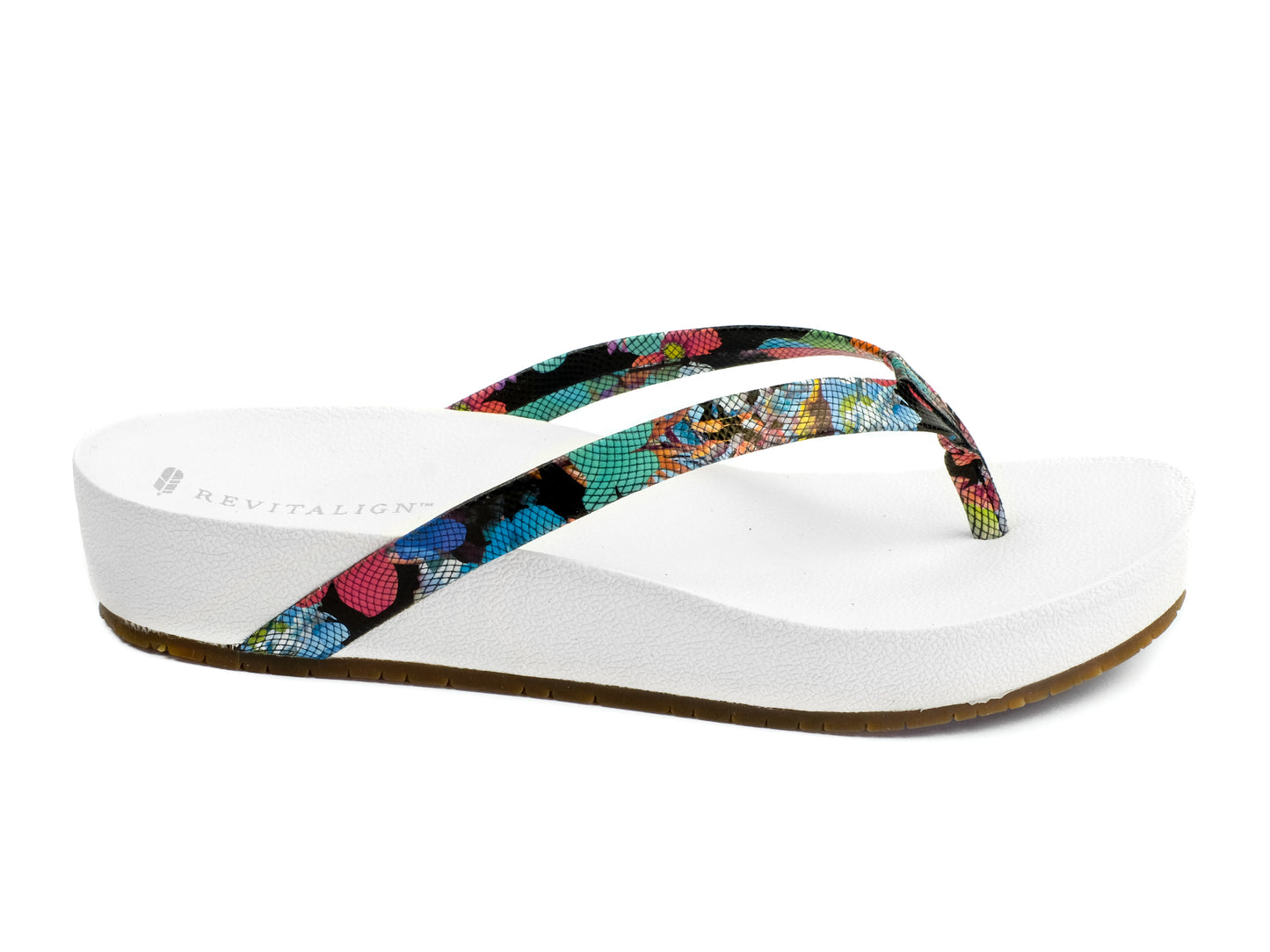 Capture the essence of effortless weekend style with the Sandy Flip. This isn't just a flip flop; it's your new weekend essential. A clean, sleek design makes it versatile, while the subtle 1" wedge adds a touch of elevation for a little extra spring in your step. Imagine the comfort of our Revitalign contoured footbed, designed to support your foot and promote proper alignment, making every step a pleasure.