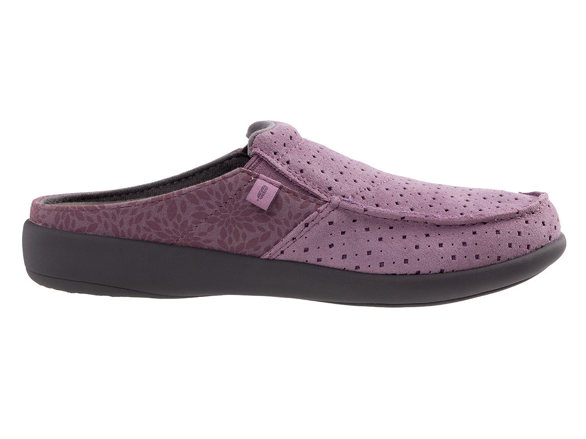 Unleash a new level of comfort with the Siesta Dahlia, a slip-on that blossoms with exceptional support and style. This shoe features a curated perforated pattern on genuine soft suede, easy-to-wear seasonal colors, and the luxurious combination of a natural cork footbed with memory foam underfoot. Designed for all-day and year-round perfection, it's a true treat for your feet.