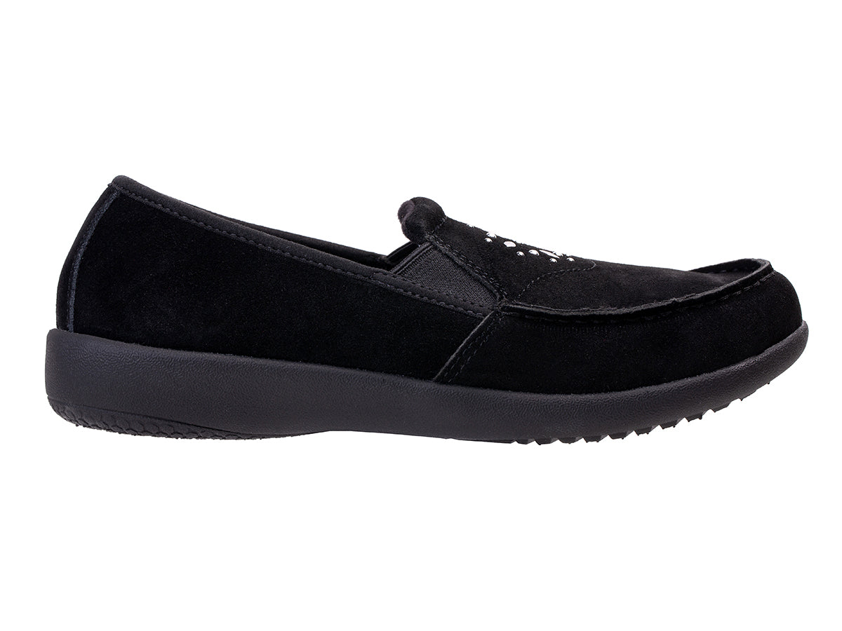 Celebrate exceptional comfort and timeless style with the Siesta Terrazzo. This slip-on is designed to bring a burst of festive charm to your everyday wear, featuring a unique trim on genuine soft suede, easy-to-wear seasonal colors, and a warm textile underfoot for ultimate comfort.
