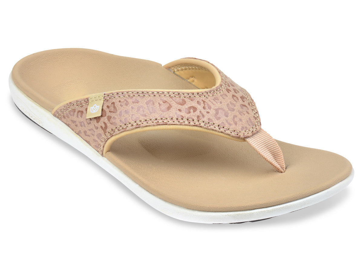 The Cheetah Print Sandal has a soft synthetic suede upper strap that has been embellished with a detailed gloss cheetah print. This tonal accent is just the right amount of sparkle for that special event. Breathable synthetic linings add to the comfort. The contoured footbed and metatarsal support provide an unmatched level of comfort and support.