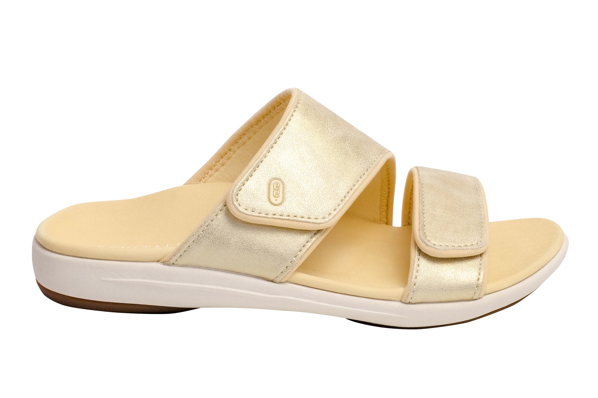 Add a touch of glamour to your everyday style with the Kholo Nuevo Metallic sandal. This easy-to-wear, low-heel sandal features a gorgeous metallic, leather-like upper paired with soft textile linings, ensuring you can move freely from workday to weekend. Enjoy a customized fit with fully adjustable straps, and find your perfect size with medium and wide options (6-12). Experience unmatched orthotic support with Revitalign® Footwear and our Full Contact Comfort® footbed, featuring a metatarsal dome, deep heel cup, forefoot cushioning, and anatomically designed arch support.
