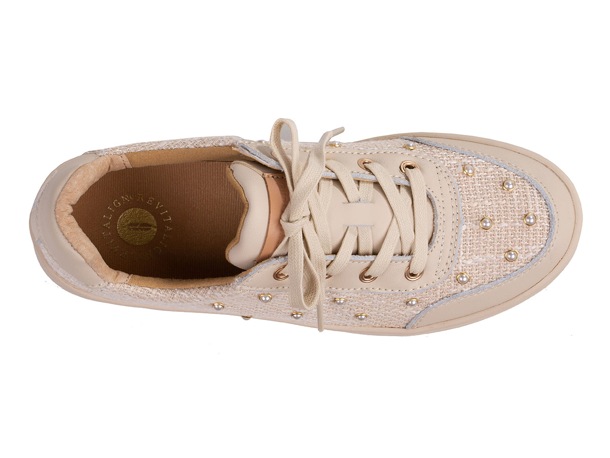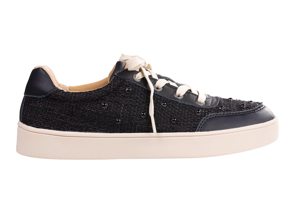 Add a touch of elegance to your seasonal wardrobe with the Belmont Pearl Sneaker. This classic sneaker features pearl-embellished trim alongside stylish tweed, offering a unique blend of sophistication and comfort. Enjoy a customized, secure fit with traditional lacing, and experience exceptional all-day comfort with a foam-padded tongue and collar. Step into the Belmont Pearl and enjoy unmatched orthotic support with Revitalign® Footwear and our Full Contact Comfort® footbed.