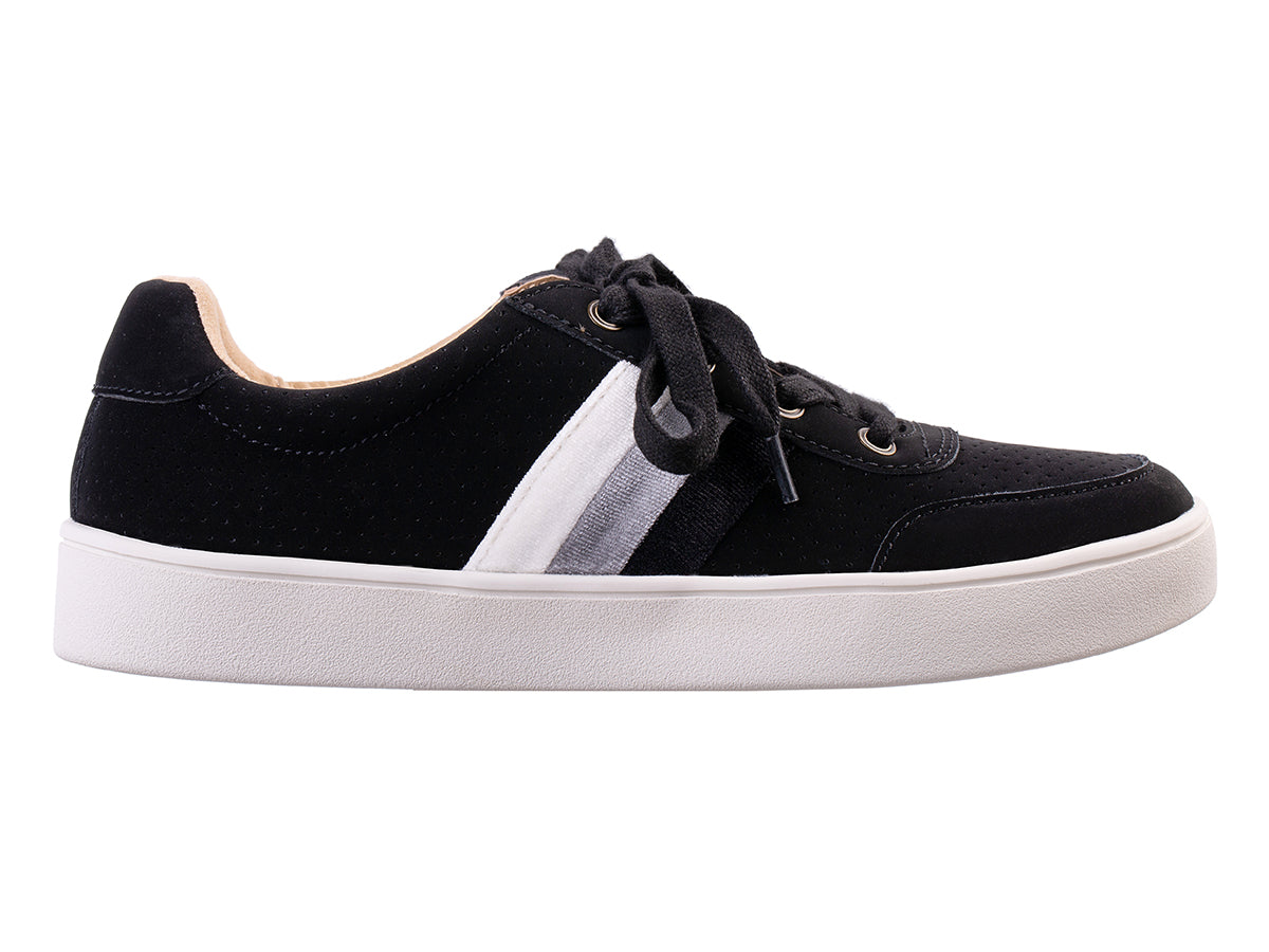 Elevate your classic sneaker style this season with the Belmont Stripe. Featuring luxurious velvet trim alongside an easy-to-wear color palette, this sneaker offers a blend of sophistication and comfort. Enjoy a customized, secure fit with classic lacing, and experience exceptional all-day comfort with a foam-padded tongue and collar. Step into the Belmont Stripe and enjoy lasting orthotic support with Revitalign® Footwear and our Full Contact Comfort® footbed.