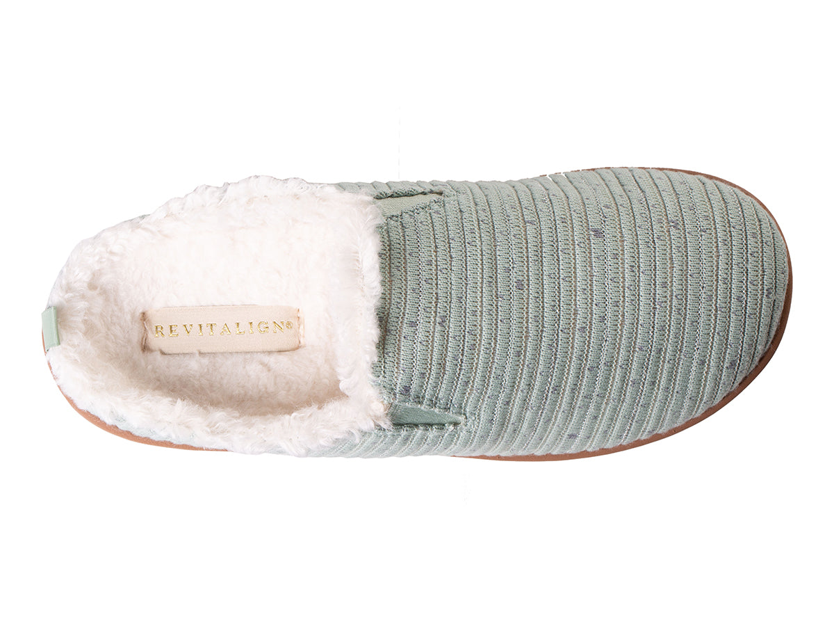 Indulge in pure bliss with the Dundee Cozy slipper, where style and comfort effortlessly intertwine. Featuring a memory foam footbed for plush cushioning, a ribbed knit textile upper, stretch gore for added flexibility, and a cozy faux fur lining, this easy slip-on slipper is the perfect blend of comfort and convenience. Experience luxurious orthotic support with Revitalign® Footwear and our Full Contact Comfort® technology, featuring a metatarsal dome, deep heel cup, forefoot cushioning, and anatomically designed arch support, for unmatched comfort and support.