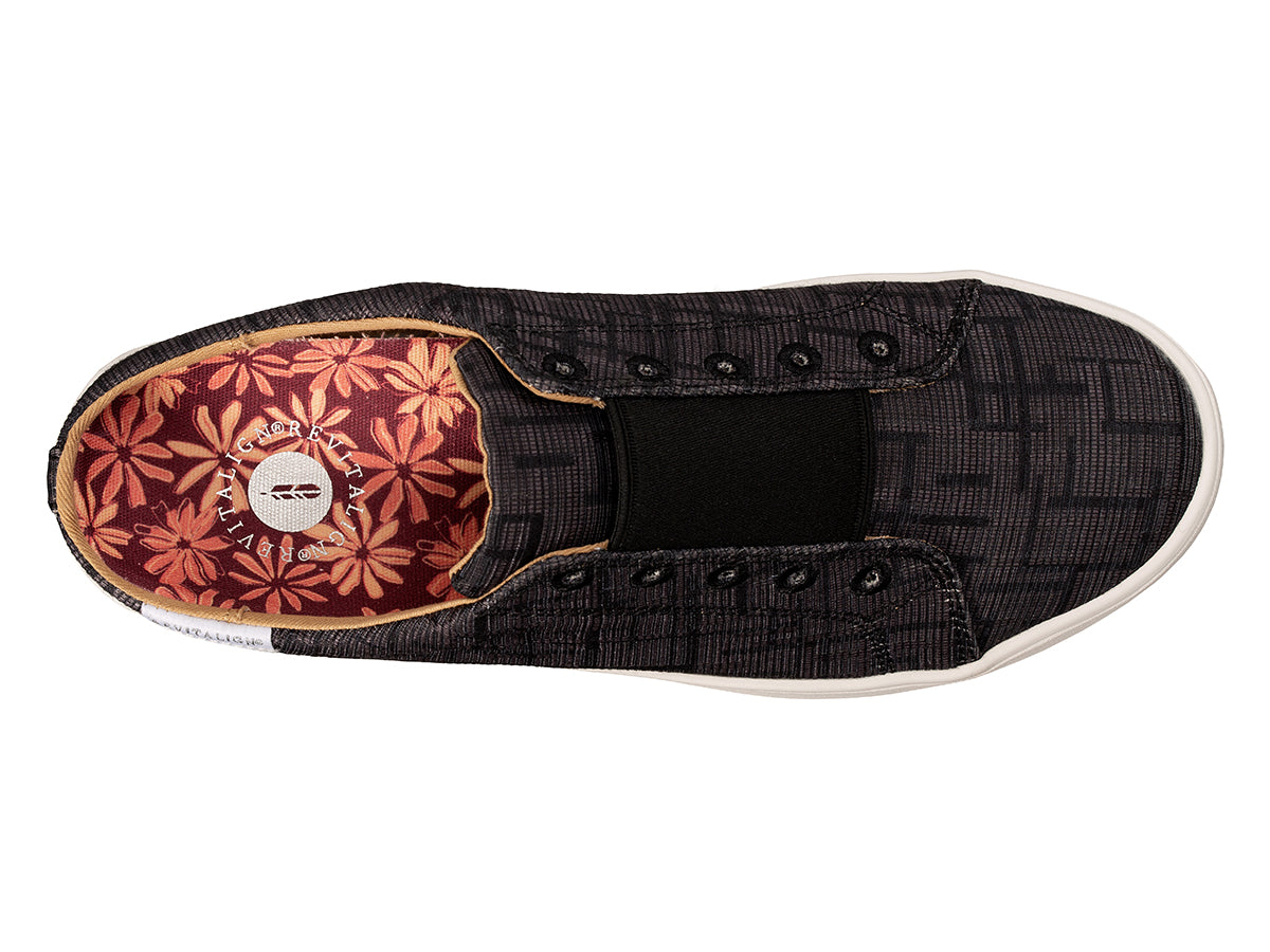 Set off on your next adventure with the perfect blend of support and fashionable style. Designed for comfort and flair, this shoe features a natural textured textile, stretch gore for slip-on and go styling, and a beautiful floral petal-printed footbed ensuring that neither function nor fashion takes a backseat. With Revitalign® Footwear and our Full Contact Comfort® Footbed, experience superior orthotic support, keeping you refreshed and supported all day long.