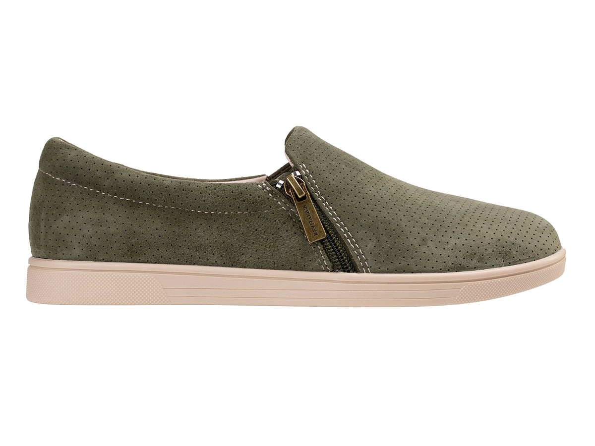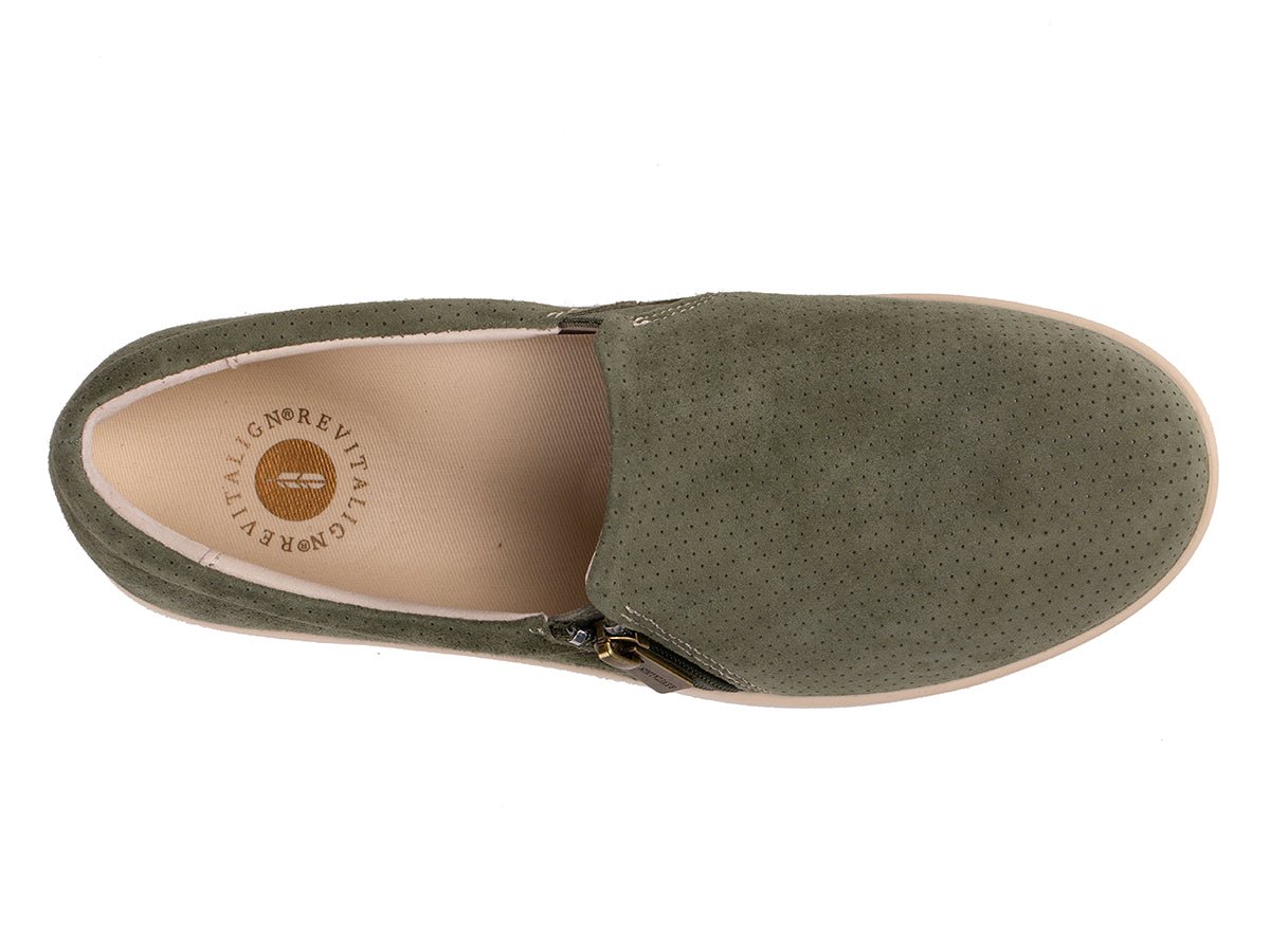 Effortlessly stylish and endlessly comfortable, the Lara Slip-On is your go-to casual sneaker for any occasion. Designed with stretch gore and a functional zipper for easy on-and-off wear, this versatile slip-on blends convenience with style. The perforated genuine suede molds to your foot over time, while added collar padding enhances comfort exactly where you need it. Experience all-day support with Revitalign® technology and the Full Contact Comfort® footbed, delivering an unmatched level of orthotic support.