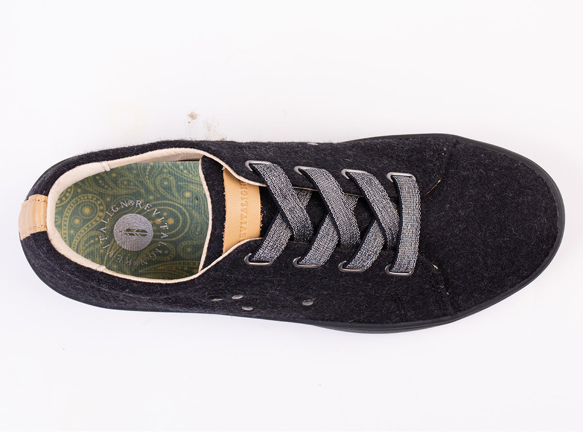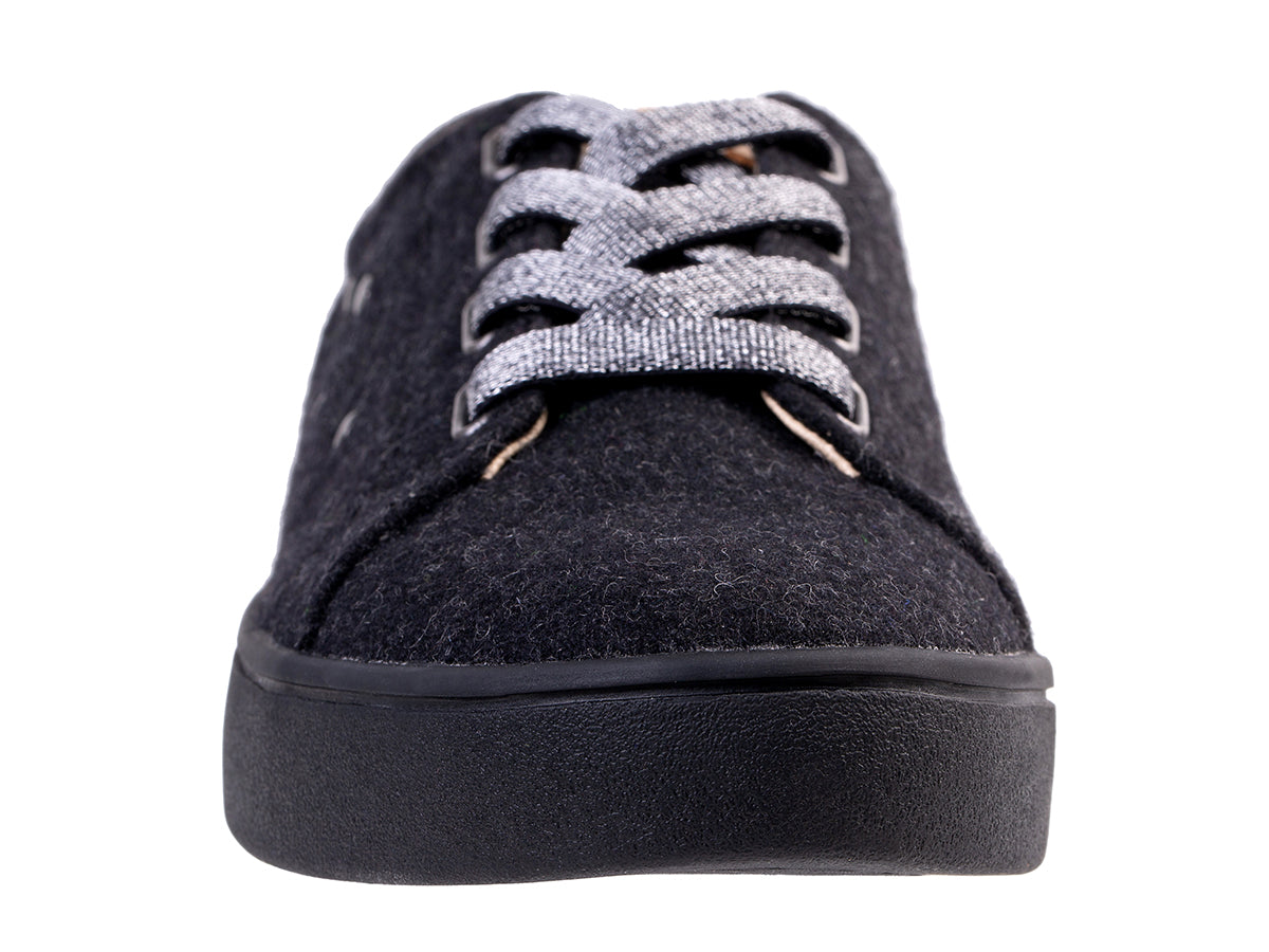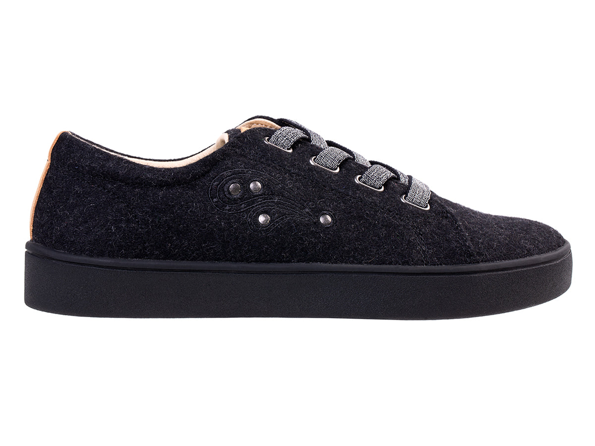 Experience the perfect fusion of comfort, warmth, and style with the Malibu Sparkle sneaker. This easy-to-wear design features a touch of sparkle, elastic stretch laces, and an embroidered paisley pattern, all beautifully trimmed with genuine full-grain leather. As with all Revitalign® Footwear, the Full Contact Comfort® Footbed delivers exceptional orthotic support for all-day comfort.