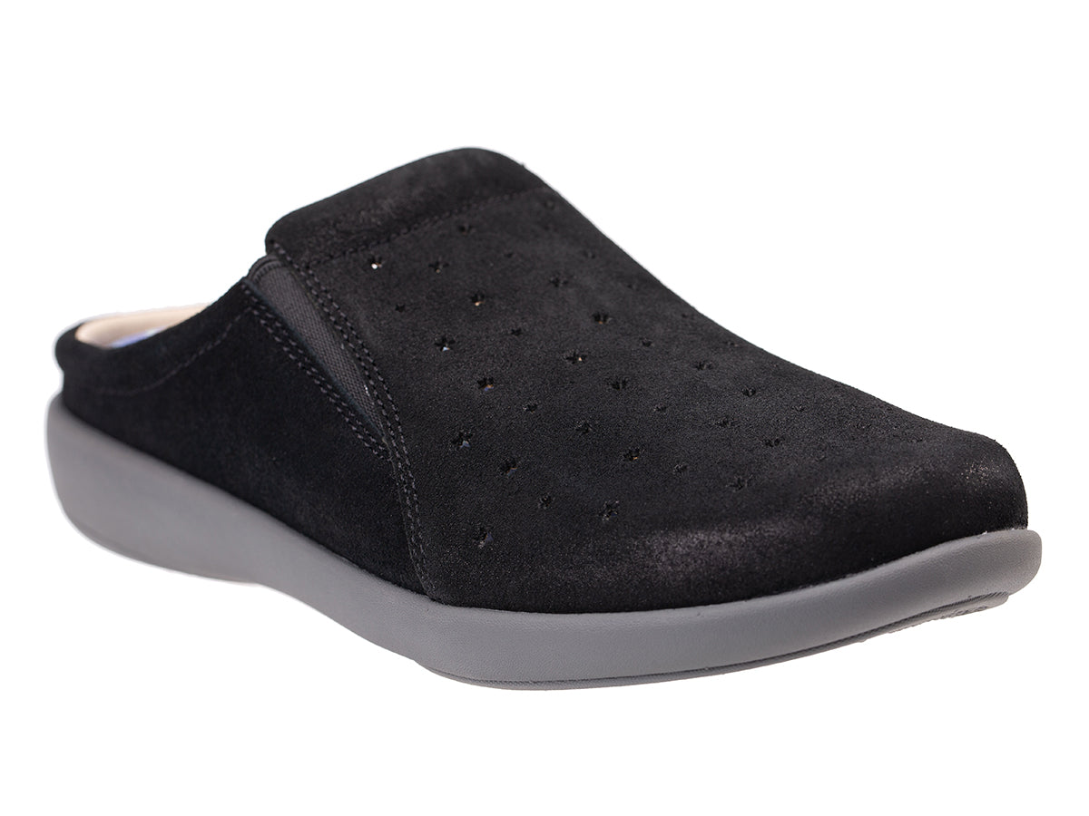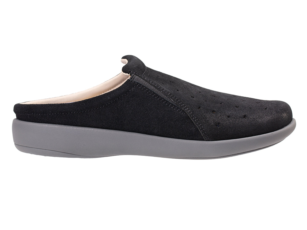 Indulge your feet in exceptional comfort from the moment you slip on the Mystic Slide. This luxurious design combines a beautifully curated perforated pattern on genuine soft shimmery suede with easy-to-wear seasonal colors and a delightful printed memory foam footbed. Experience the ultimate in all-day and year-round perfection with the unmatched orthotic support of Revitalign® Footwear and our Full Contact Comfort® Footbed.