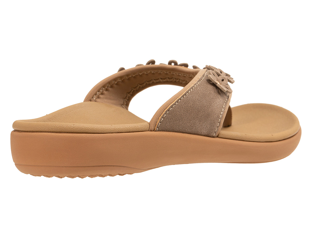 Let the Yumi Hamptons set the tone for your next vacation. Our most iconic and beloved sandal is beautifully trimmed with gorgeous dimensional flower petals, riveted with a metal centerpiece. This adds a touch of femininity and craftsmanship to a style already loaded with orthotic support and comfort. Step out and step onto exceptional comfort and support from Revitalign®, featuring our Full Contact Comfort® footbed.