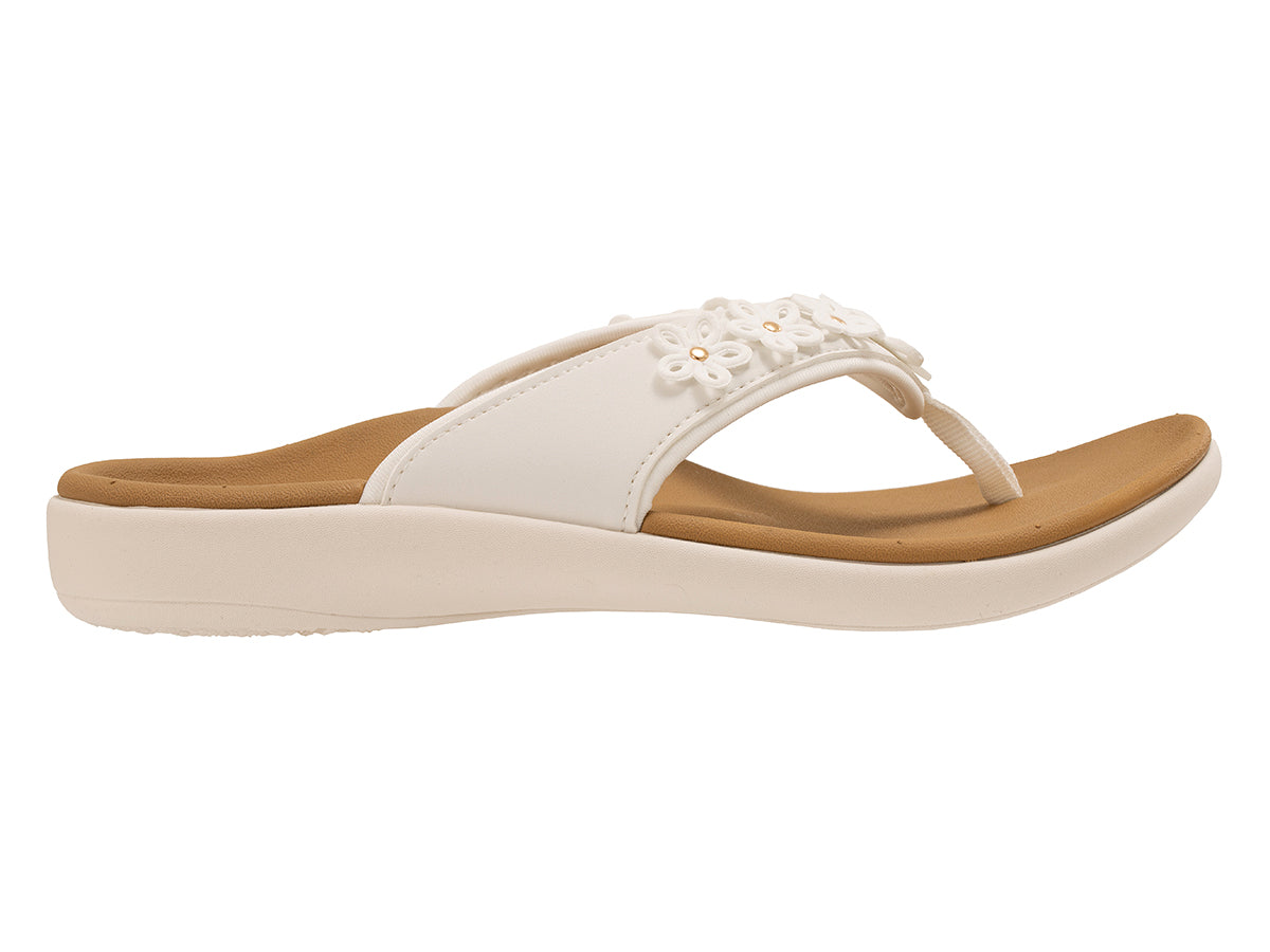 Let the Yumi Hamptons set the tone for your next vacation. Our most iconic and beloved sandal is beautifully trimmed with gorgeous dimensional flower petals, riveted with a metal centerpiece. This adds a touch of femininity and craftsmanship to a style already loaded with orthotic support and comfort. Step out and step onto exceptional comfort and support from Revitalign®, featuring our Full Contact Comfort® footbed.