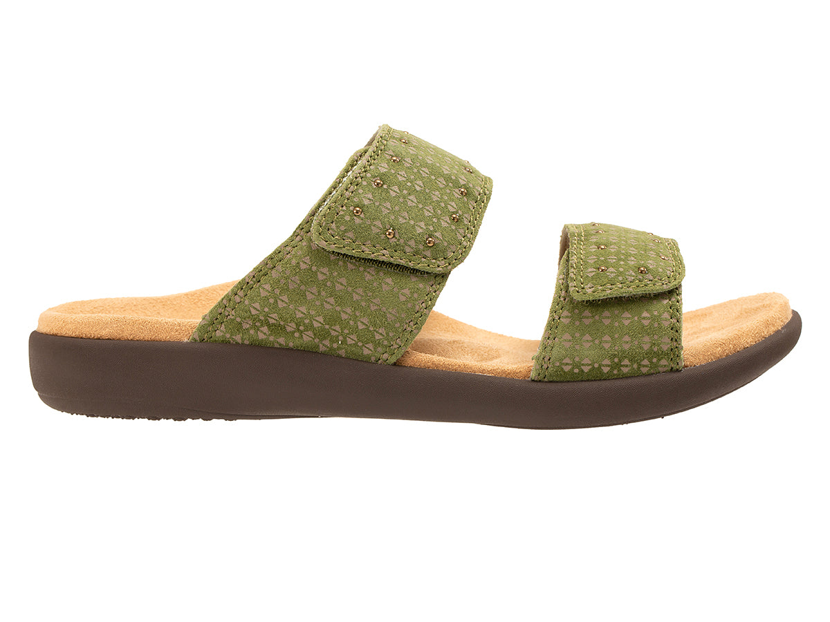 Experience the perfect harmony of sophistication and ease with the Muse Memory Foam Slide. Featuring the unparalleled all-day comfort of Full Contact Comfort® by Revitalign®, this slide combines refined style with superior support. Crafted from genuine, soft low-knapp suede, trimmed with chic studded detail and a subtle tonal print pattern, and lined with quick-dry materials for a lightweight, breathable feel.