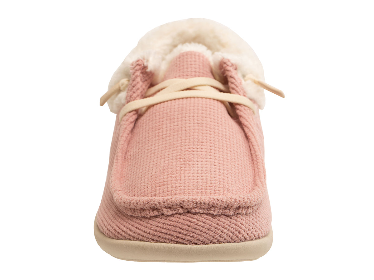 - Chenille Ribbed Textile Upper: Provides a soft, cozy texture and visual appeal.