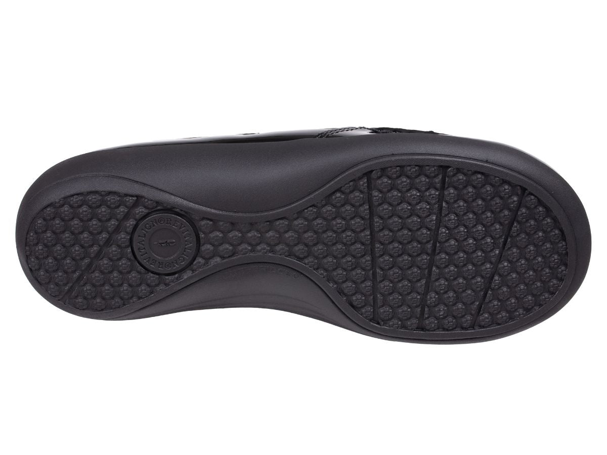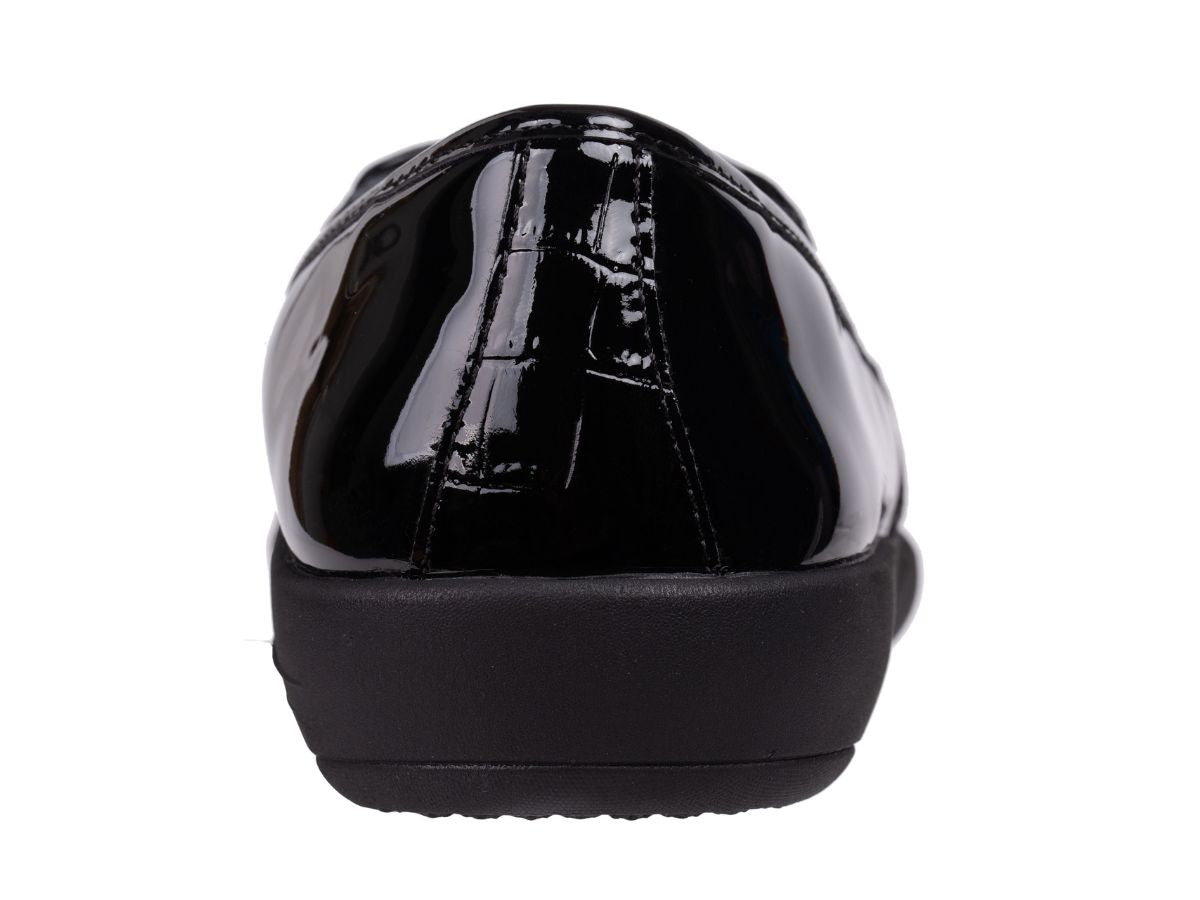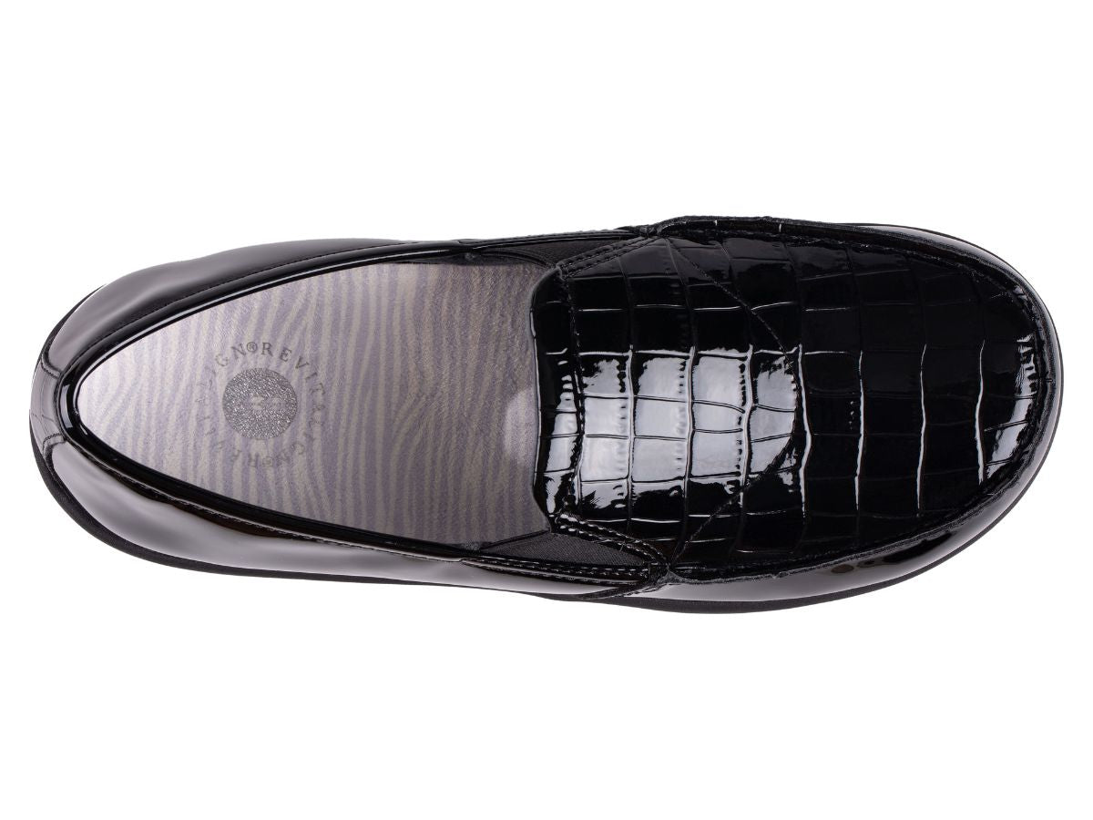 Experience the luxurious embrace of seasonal style with the Siesta Patent Slip-On. This shoe isn't just a slip-on; it's a statement piece that combines rich, deep hues with the subtle texture of croco trim, creating a look that's both elegant and wearable. Feel the gentle give of the stretch gore as you slip them on, and enjoy the confidence of all-day comfort and orthotic support.